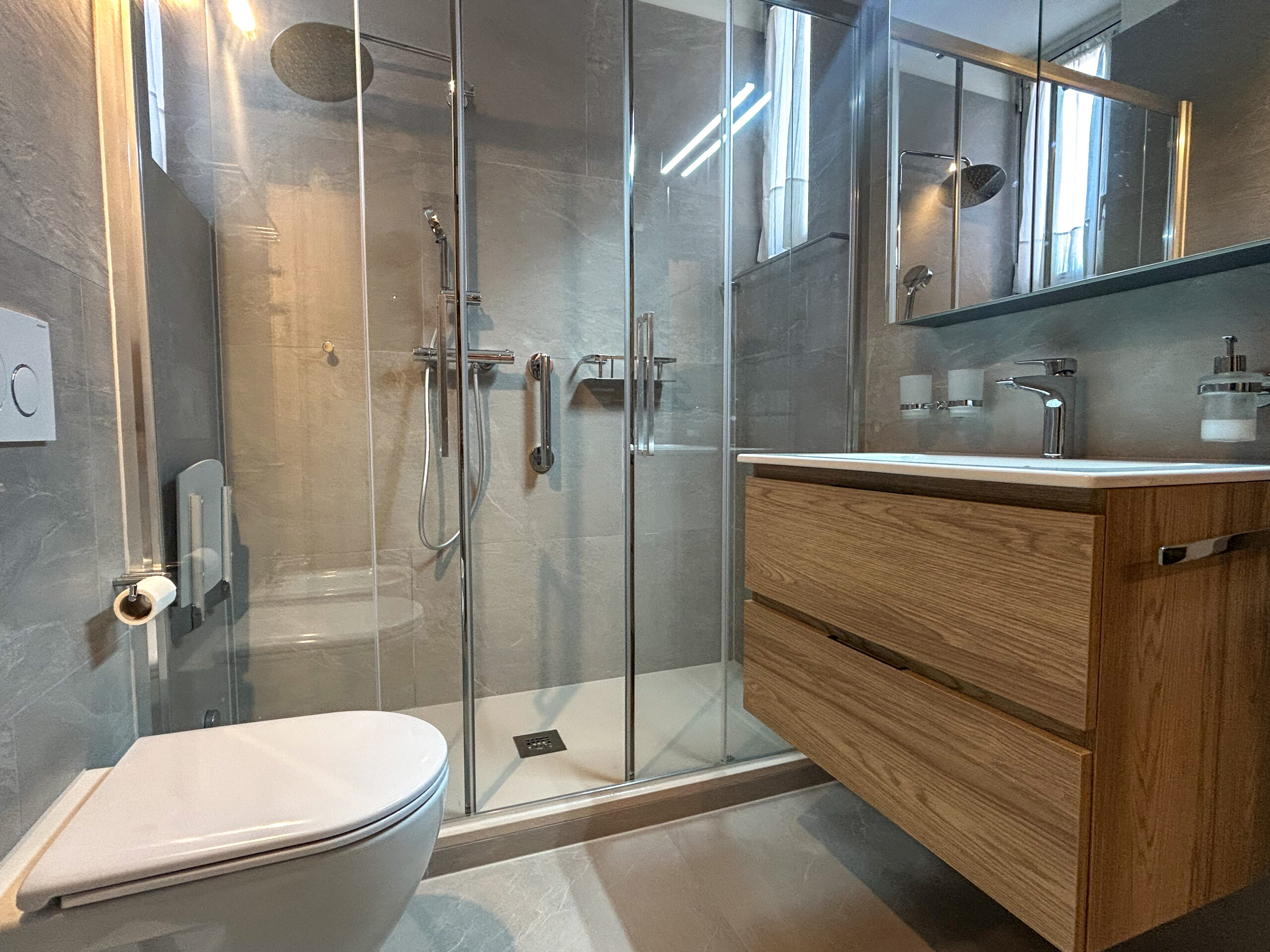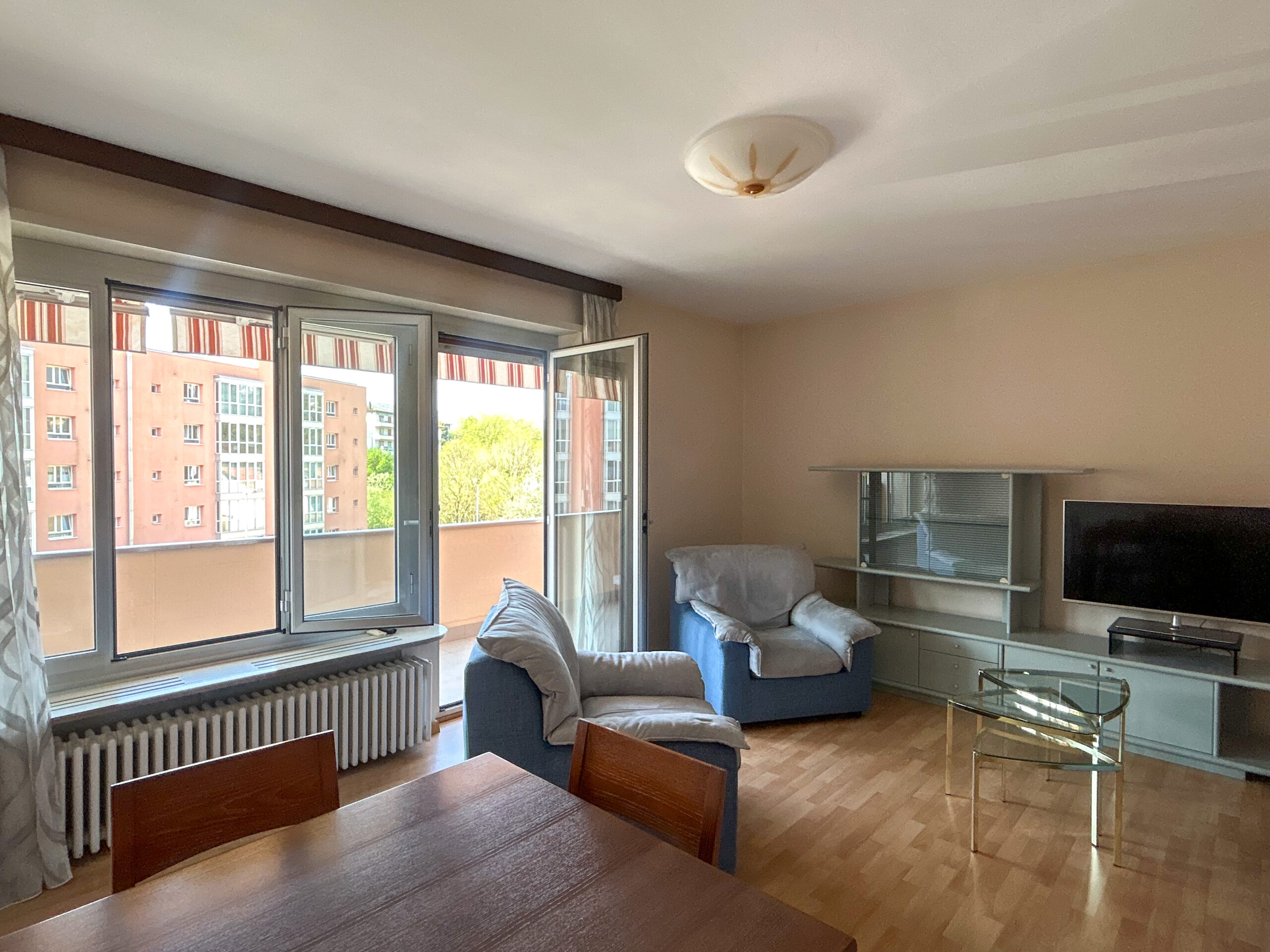 Appartamento di 3.5 locali di 70 mq, al piano d’accesso, composto da una zona giorno ben organizzata con soggiorno e cucina separata, entrambi con accesso diretto al balcone recentemente ristrutturato. Gli ambienti possono essere unificati per creare un open space, ottenendo uno spazio più ampio, luminoso e adatto a una distribuzione moderna e funzionale.