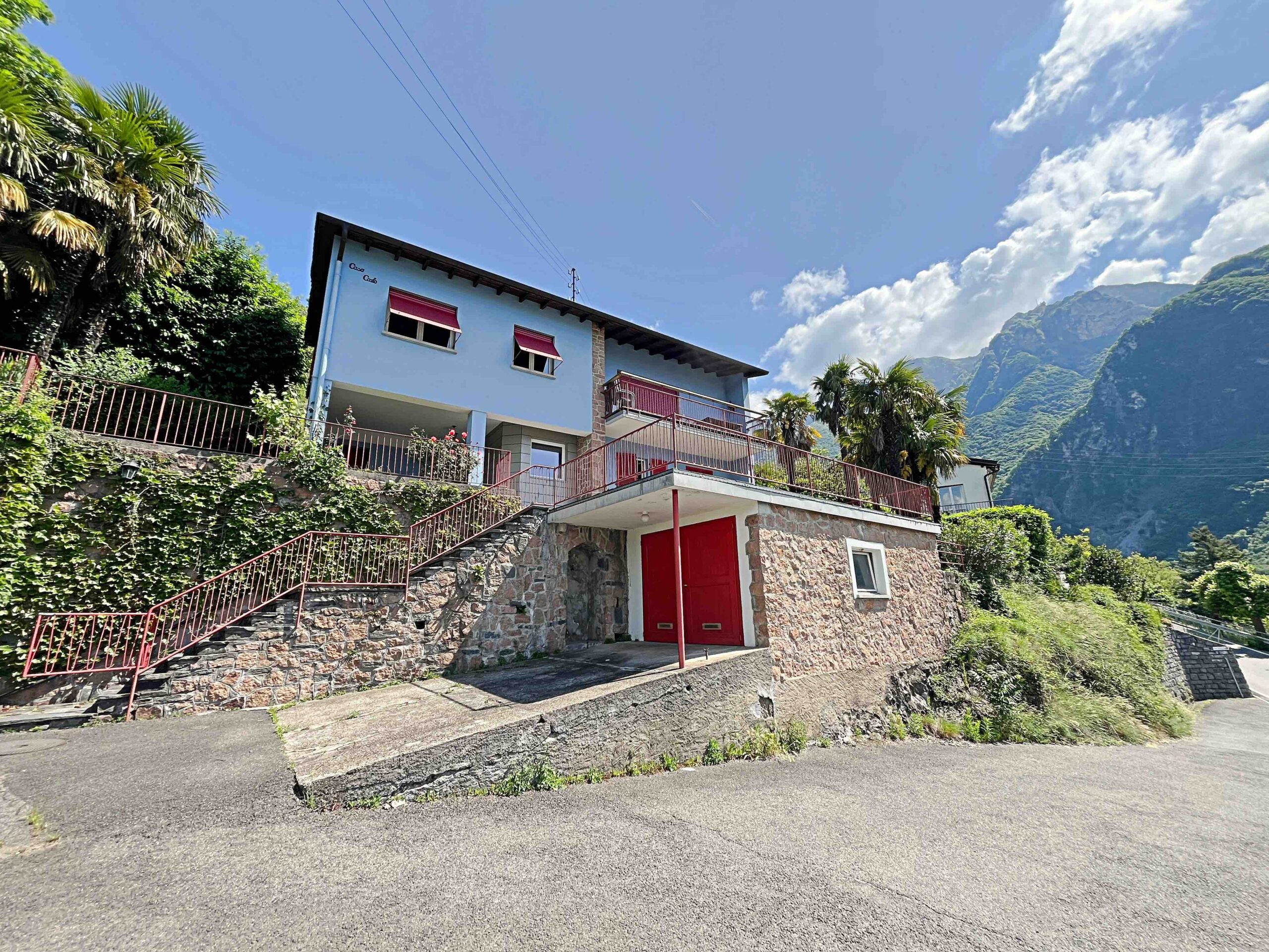 Was: Das Haus liegt in einem großen, terrassenförmig angelegten Garten und bietet Privatsphäre, Platz und einen spektakulären Blick auf den See und die Berge. Es erstreckt sich über zwei Ebenen und besteht aus zwei unabhängigen Wohnungen, jede mit eigenem Eingang.